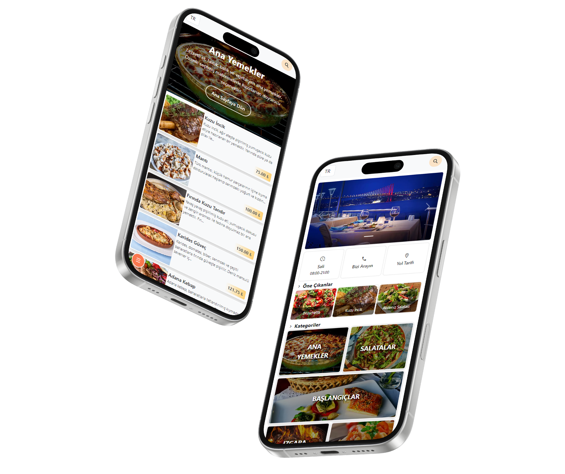 Restoranlar için geliştirdiğimiz yenilikçi QR Menü sistemimizle, dijital dünyada fark yaratmayı hedefliyoruz. İşletmelerin menülerini kolayca yönetebilecekleri, çevre dostu ve kullanıcı dostu bir platform sunarak, hem maliyetlerden tasarruf etmelerini sağlıyor hem de müşteri deneyimini en üst seviyeye çıkarıyoruz.